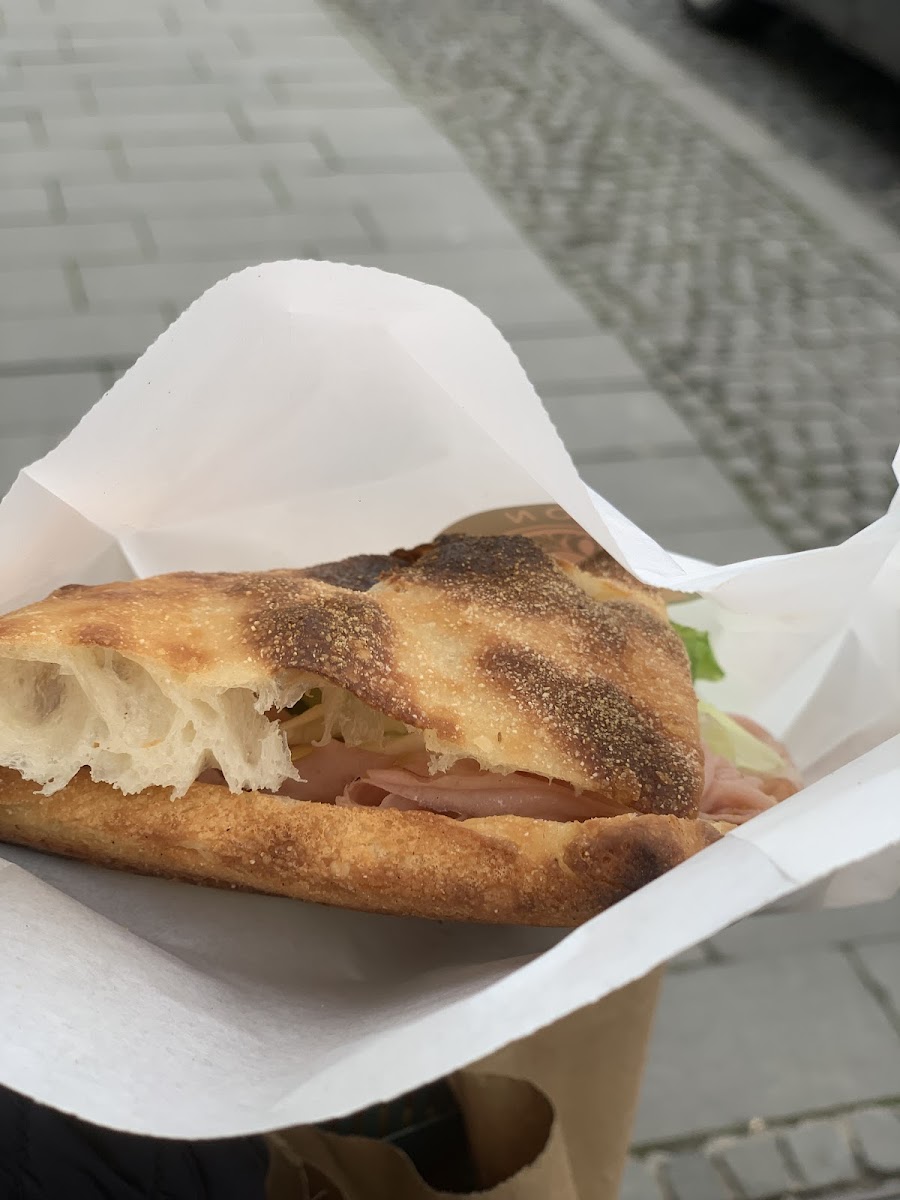BAKERON doesn't stop at pizza! Their sandwiches, made on freshly baked focaccia bread, offer a hearty alternative. The Sandwich cu Prosciutto Crudo boasts layers of exquisite prosciutto crudo, creamy mozzarella, and crisp rucola, creating a flavor explosion that’s perfect for a casual lunch or on-the-go meal.